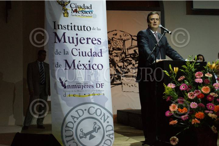 MÉXICO D.F., A 6 DE MARZO DE 2009.- Marcelo Ebrard Casaubon, jefe del ejecutivo local durante su discurso en el 2 informe anual del Instituto de las Mujeres de la Ciudad de México. FOTO: VICTORIA VALTIERRA/CUARTOSCURO.COM