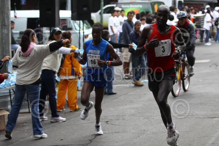 MÉXICO, D.F., 12SEPTIEMBRE2010.- Los kenianos Julius Ketter y Hilary Kimaiyo, 2do y 1er lugar respectivamente, compiten durante la edición XXVIII del Maratón Internacional de la Ciudad de México a lo largo de 42 kilómetros de las principales vialidades de la capital, comenzado en el Zócalo capitalino y recorriendo vialidades como Reforma, Revolución e Insurgentes Sur. Con 2 horas, 12 minutos y 10 segundos, el keniano Hilary Kimaiyo se adjudicó este domingo la victoria. FOTO: RODOLFO ANGULO/CUARTOSCURO.COM