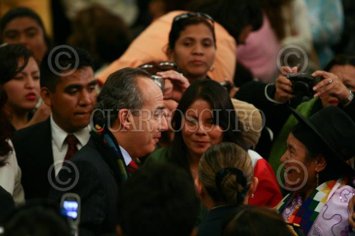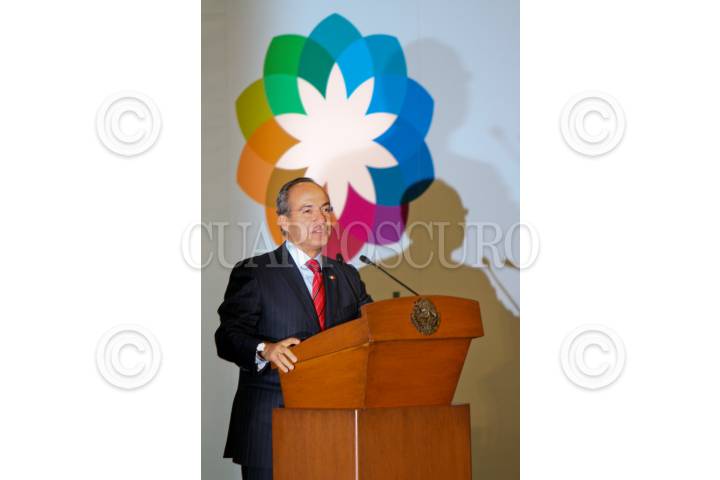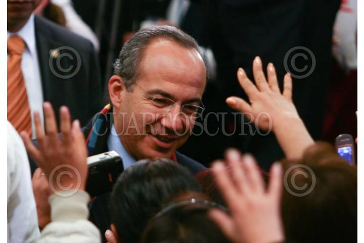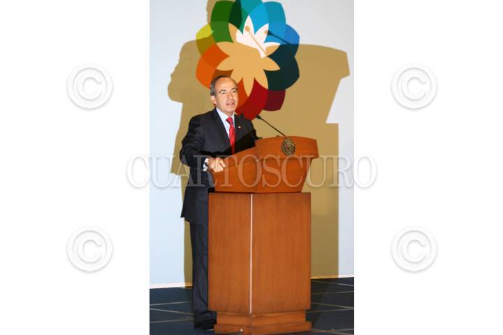 MÉXICO D.F., 12AGOSTO2008.- Felipe Calderon Presidente de México, durante el 3.er encuentro internacional de empresarias sociales del fondo nacional de apoyos a empresas en solidaridad 2008, realizado en el salon valparaiso del centro Banamex FOTO: SÁSHENKA GUTIÉRREZ /CUARTOSCURO.COM