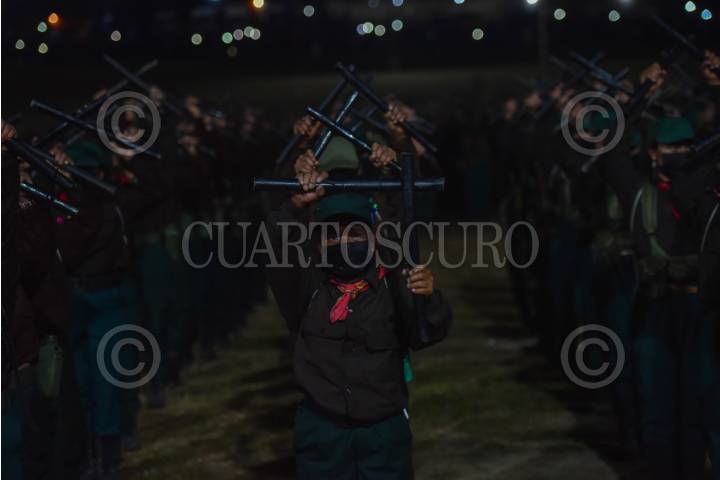 DOLORES HIDALGO, CHIAPAS, 01ENERO2024.- Ante cientos de zapatistas y sociedad civil afín al movimiento del Ejército Zapatista de Liberación Nacional (EZLN), el subcomandante Moises ofreció un discurso en el marco del 30 aniversario del levantamiento zapatista. FOTO: PEDRO ANZA/CUARTOSCURO.COM