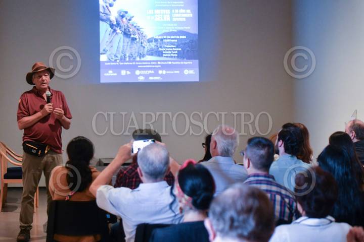 CIUDAD DE MÉXICO, 20ABRIL2024.- Antonio Turok, fotoperiodista, durante la presentación del documental Los motivos de la selva. A 30 años del levantamiento zapatista, realizado en las instalaciones del Museo de San Ildefonso. FOTO: MARIO JASSO/CUARTOSCURO.COM