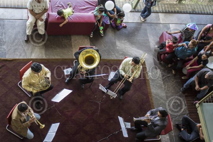 MÉXICO, D.F., 27ABRIL2014.- En la Biblioteca José Vasconcelos se llevaron a cabo diversas actividades en el marco de los festejos por el Día del Niño, que se celebrará el próximo 30 de abril. En el evento participaron artistas, músicos, grupos de danza y payasos que convivieron con los niños asistentes. FOTO: DAVID POLO /CUARTOSCURO.COM
