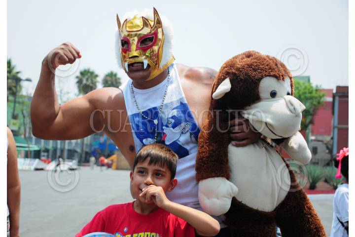 Los niños se toman una fotografía con sus luchadores favoritos.