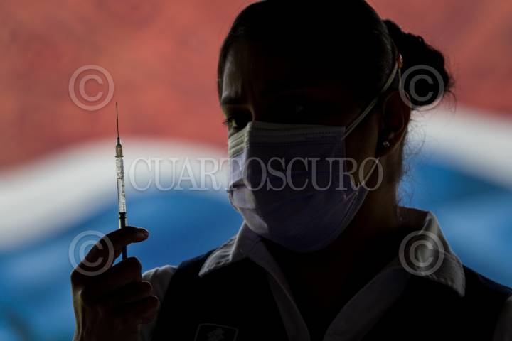 Una enfermera prepara una dosis de Sputnik V en la unidad de vacunación de la Arena Ciudad de México.