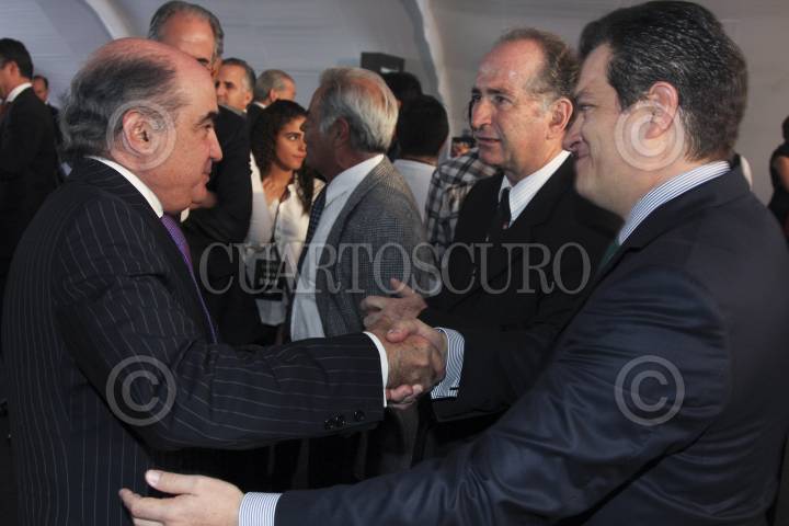 MÉXICO, D.F., 10SEPTIEMBRE2012.- Salomon Chertorivski, Enrique Villa Rivera y Juan José Suarez Coppel, a su llegada a la comida anual de los 300 líderes más influyentes de México 2012, realizado en el Museo Nacional de Antropología e Historia. FOTO: SAÚL LÓPEZ /CUARTOSCURO.COM