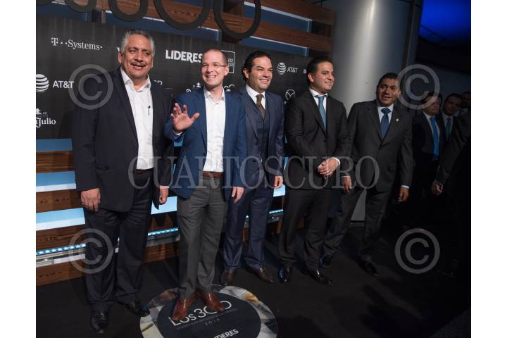 CIUDAD DE MÉXICO, 05SEPTIEMBRE2018.- Guadalupe Acosta Naranjo; Ricardo Anaya, ex candidato presidencial; Enrique Vargas, presidente municipal de Huixquilucan; Damián Zepeda, dirigente nacional del PAN, y el diputado, Jorge Luis Preciado, durante su llegada a la Comida Anual con los 300 Líderes Más Influyentes de México, realizada en la Expo Santa Fe. FOTO: MARIO JASSO /CUARTOSCURO.COM