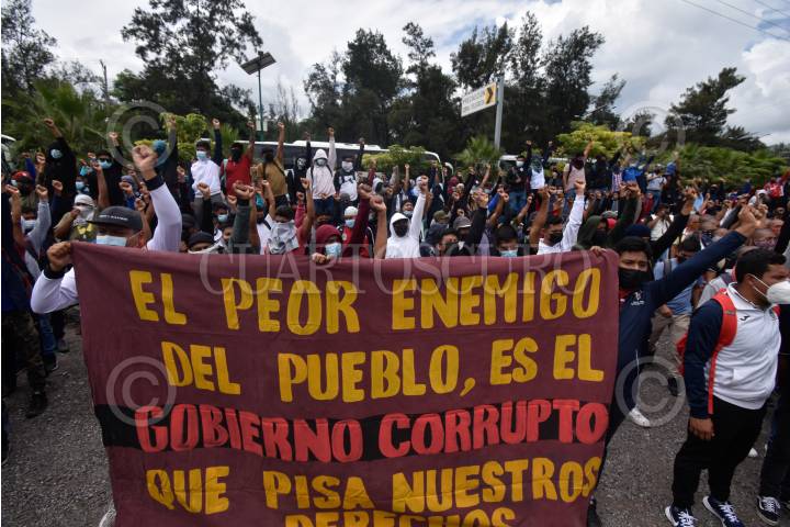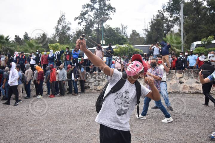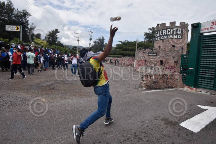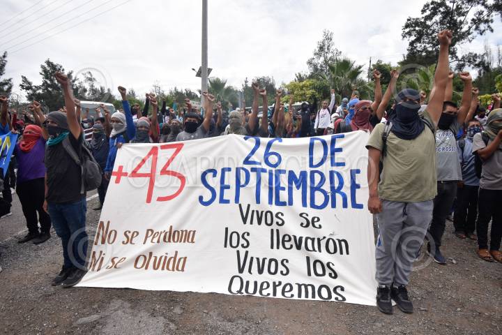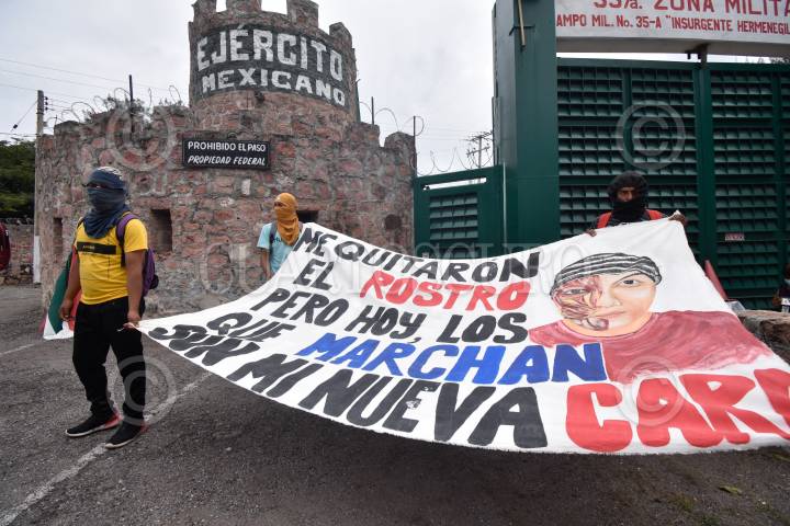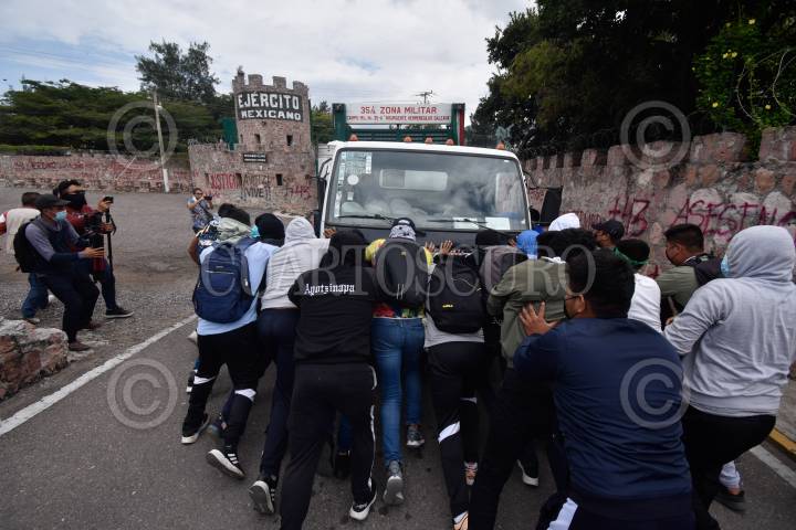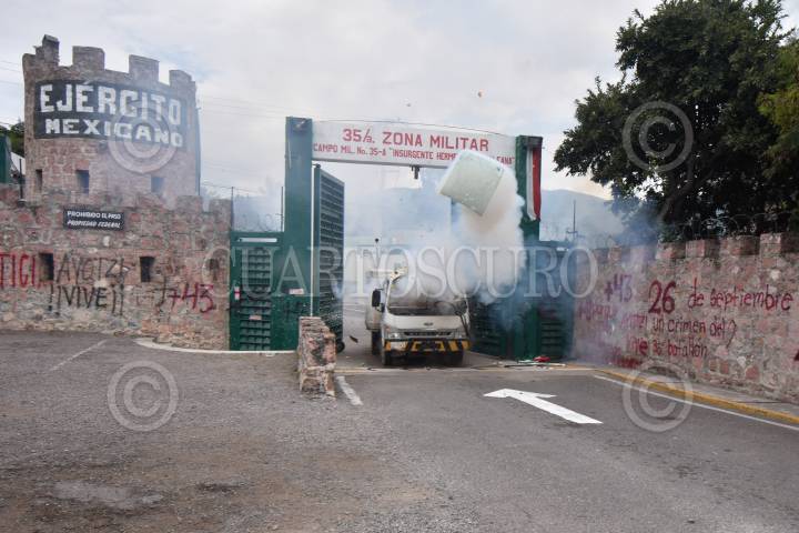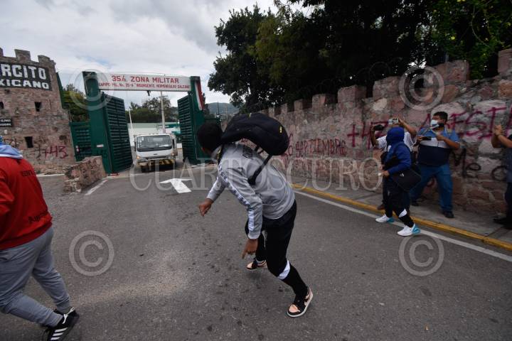 Normalistas y padres de Los 43 estudiantes de Ayotzinapa protestaron afuera de la 35 Zona Militar, esto como parte de su jornada de lucha a unos días de que se cumplan ocho años de la desaparición de los jóvenes.