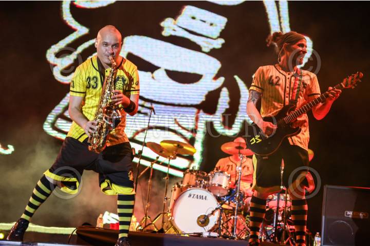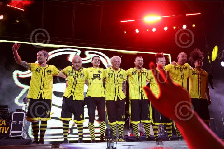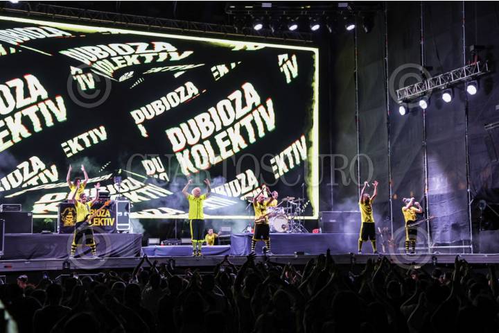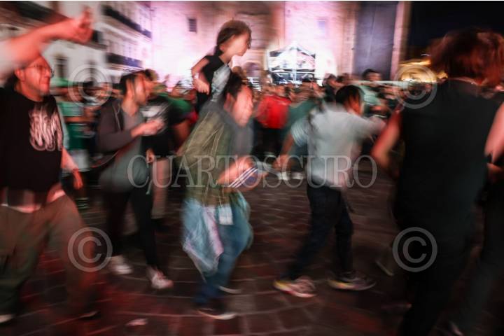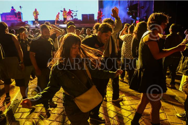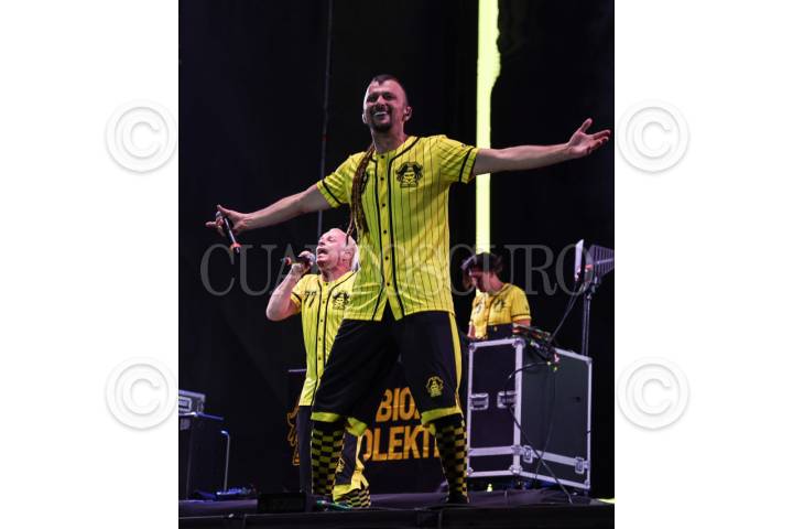 ZACATECAS, ZACATECAS, 22ABRIL2025.- La banda de Bosnia y Herzegovina, Dubioza Kolektive, se presentó en la Plaza de Armas como parte de las actividades del 39 Festival Cultural Zacatecas 2025. La banda, surgida en 2003 durante la posguerra en los Balcanes, puso a bailar al público zacatecano con una fusión explosiva de ska, punk, reggae, electrónica y hip-hop. FOTO: ADOLFO VLADIMIR /CUARTOSCURO.COM