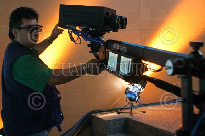 MÉXICO, D.F., 21OTCUBRE2009.- En conferencia de prensa con Eduardo Aguilar, representante de Sony en México junto a Javier Alarcon, director editorial de Televisa deportes y Elias Rodriguez, director general de operaciones de Televisa Chapultepec se presento la nueva cámara que servirá para la transmisión del partido de fútbol, (América-Guadalajara) en Tercera Dimensión 3D. FOTO: ENRIQUE ORDÓÑEZ/CUARTOSCURO.COM