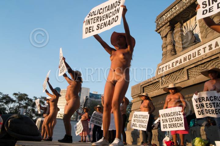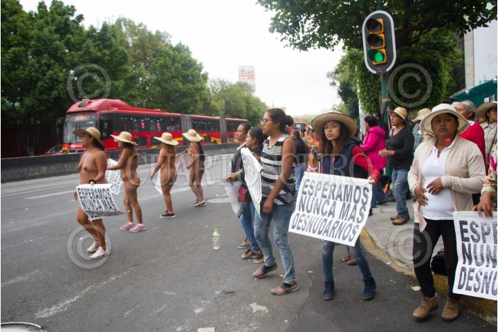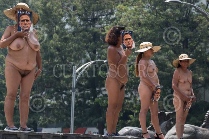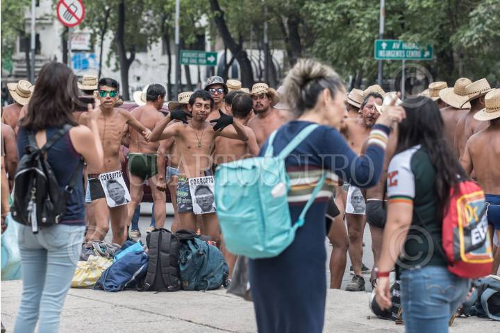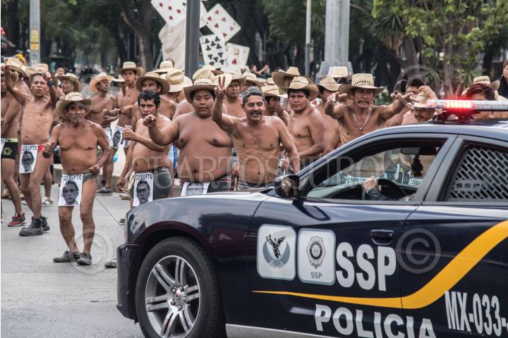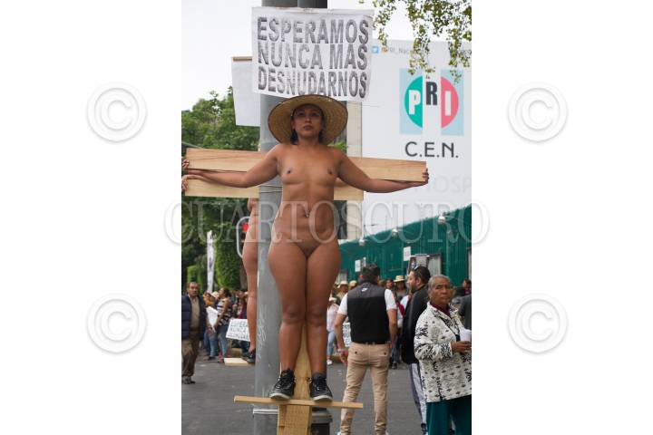 CIUDAD DE MÉXICO, 06JULIO2018.- Miembros de la organización campesina de los 400 Pueblos, realizaron una protesta en las afueras del CEN del PRI. Nuevamente salieron a las calles a manifestarse, con su particular forma, Desnudos. FOTO: VICTORIA VALTIERRA / CUARTOSCURO.COM
