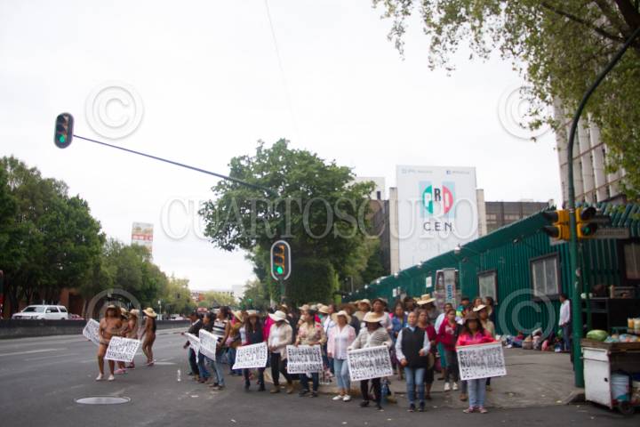 Integrantes de los 400 pueblos continúan en plantón frente a la Segob en espera de ser atendidos.