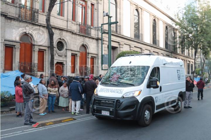 CIUDAD DE MÉXICO, 16FEBRERO2024.- Una mujer que integra el campamento de los 400 pueblos frente a la Secretaria de Gobernación murió aparentemente por un paro cardíaco. Peritos acudieron para el levantamiento del cuerpo. FOTO: ROGELIO MORALES/CUARTOSCURO.COM