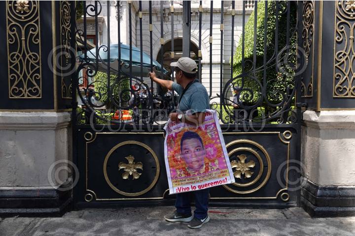 CIUDAD DE MÉXICO, 23SEPTIEMBRE2024.- En el marco de los 10 Años de la desaparición forzada de los 43 estudiantes de la Escuela Rural "Isidro Burgos", madres, padres y normalistas exigieron justicia en un mitin dentro de las actividades " Sin Tregua Ni Cuartel", realizado afuera de las inmediaciones de la Secretaria de Gobernación. FOTO: GRACIELA LÓPEZ /CUARTOSCURO.COM
