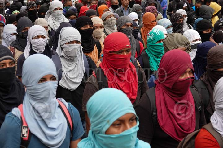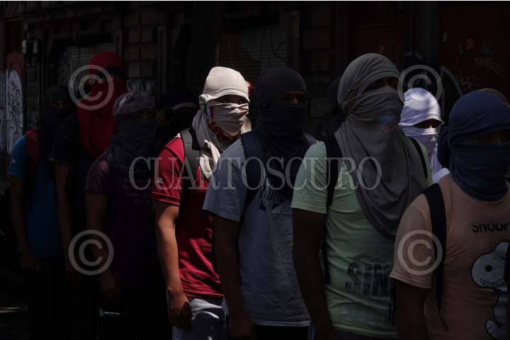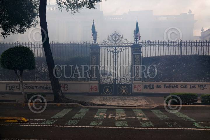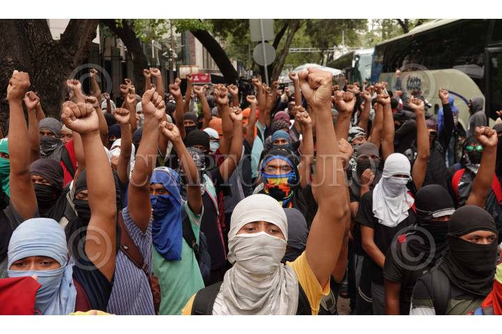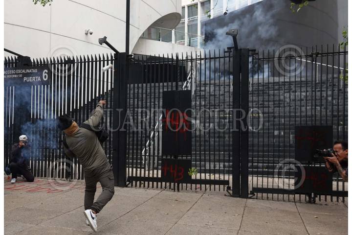 CIUDAD DE MÉXICO, 26SEPTIEMBRE2024.- Se cumplen 10 años de la desaparición de los 43 normalistas de Ayotzinapa sin que dos administraciones puedan dar con su paradero, tanto la de Enrique Peña Nieto y Andrés Manuel López Obrador, por lo que hoy padres de los desaparecidos, normalistas y sociedad civil marcharon del Ángel de la Independencia rumbo al zócalo para seguir exigiendo dar con su paradero y castigo a quien los secuestro y desapareció. Sus padres y madres han señalado desde su desaparición que mantienen la esperanza de localizarlos con vida. Integrantes del llamado Bloque Negro se sumaron a la acción haciendo pintas y dañando comercios en avenida Reforma. FOTO: GRACIELA LÓPEZ/CUARTOSCURO.COM