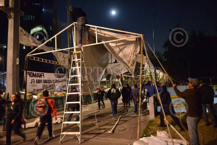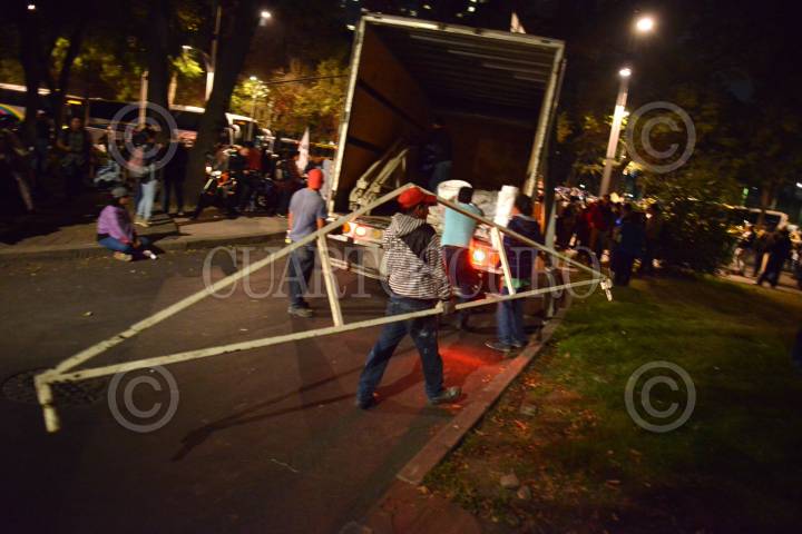 MÉXICO, D.F., 26NOVIEMBRE2015.- Al finalizar la marcha en demanda por la aparición con vida de los 43 normalistas desaparecidos de Ayotzinapa al cumplirse 14 meses del ataque en Iguala, Guerrero, los familiares instalaron del plantón en la esquina de Pase de la Reforma y Chivatito. FOTO: ADOLFO VLADIMIR /CUARTOSCURO.COM