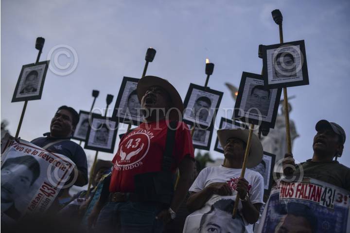 CIUDAD DE MÉXICO, 26ABRIL2016.- Organizaciones sociales, estudiantiles y campesinas acompañaron a los familiares de los 43 estudiantes desaparecidos de Ayotzinapa, en exigencia de justicia a 19 meses de su desaparición y asesinato de tres de los jóvenes atacados la madrugada del 26 de septiembre en Iguala, Guerrero. El 24 de abril pasado el Grupo Interdiciplinario de Expertos Independientes (GIEI) de la Comisión Interamericana de Derechos Humanos presentó el informe final de su investigación en el cual refuta la investigación de la Procuraduría General de la República en el caso, informó que no se encuentra ningún rastro de la posible cremación de los jóvenes en el basurero de Cocula, versión oficial, además de sembrar evidencia y tortura a testigos para sacar confesiones a modo. FOTO: ADOLFO VLADIMIR /CUARTOSCURO.COM