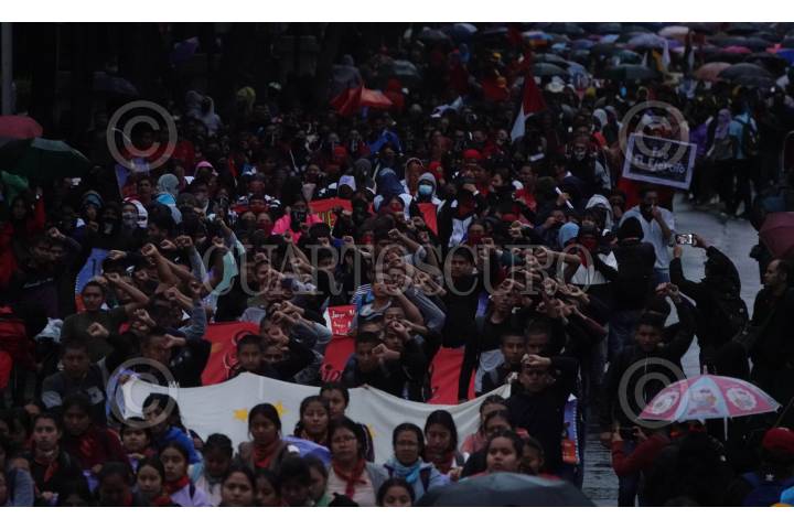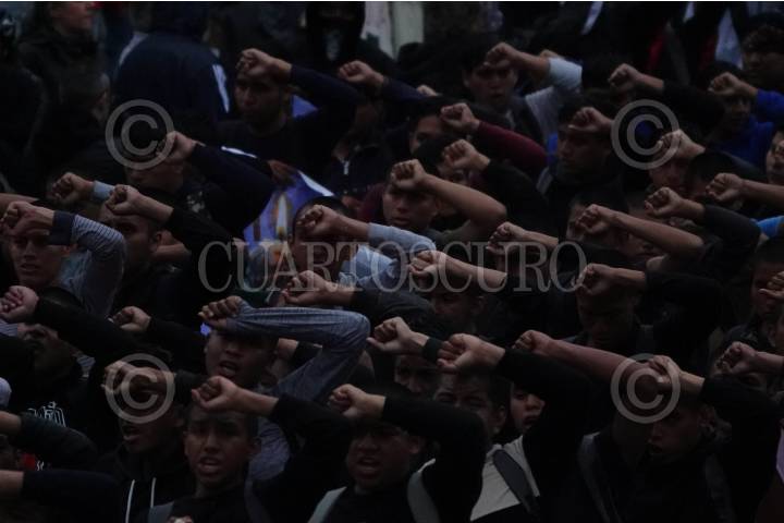 CIUDAD DE MÉXICO, 26SEPTIEMBRE2024.- Contingentes arribaron al Zócalo tras la marcha conmemorativa a 10 años de la desaparición de los 43 normalistas de Ayotzinapa, Guerrero. FOTO: GALO CAÑAS/CUARTOSCURO.COM