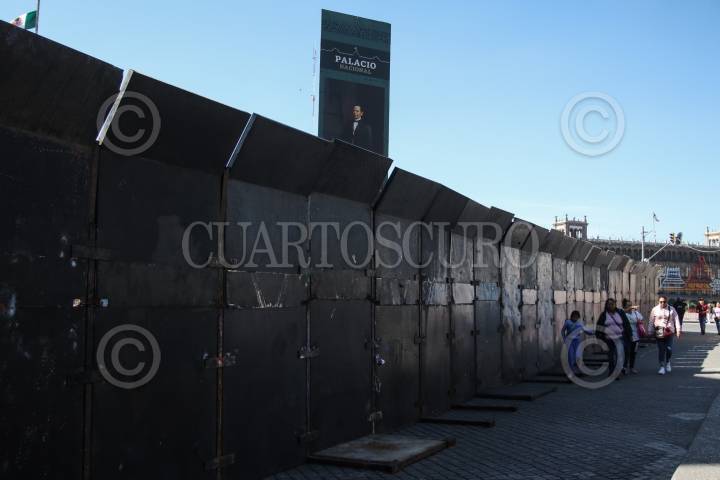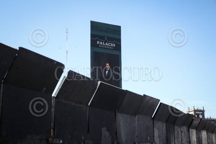CIUDAD DE MÉXICO, 26SEPTIEMBRE2023.- Amanece el Palacio Nacional con vallas previo a la marcha de exigencia de la búsqueda y esclarecimiento de los 43 estudiantes de Ayotzinapa que se llevará a cabo hoy en marco de los 9 años. FOTO: ANDREA MURCIA /CUARTOSCURO.COM