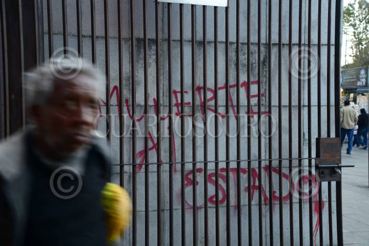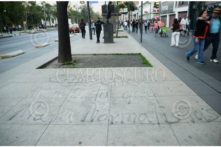 MÉXICO, D.F., 23NOVIEMBRE2014.- Después de la marcha del 20 de noviembre en la que se unieron las voces de miles de mexicanos clamando paz y justicia, lo único que queda ahora son unas cuantas frases e imágenes en las calles y 11 jóvenes que han sido trasladados a penales ubicados en Nayarit y Veracruz. FOTO: ISABEL MATEOS /CUARTOSCURO