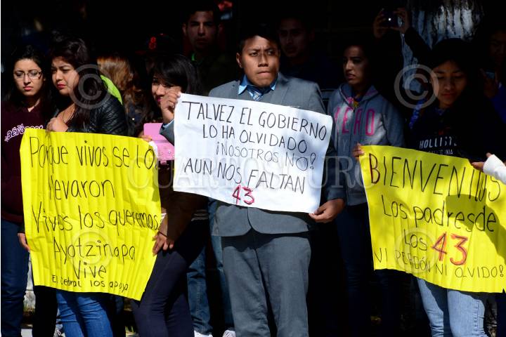 MATAMOROS, TAMAULIPAS, 26FEBRERO2016.- A 17 mese de la desaparición de los 43 estudiantes normalistas el asesinato de 3 y varios lesionados en Iguala, Guerreo, los padres termina su Caravana por la Verdad y la Justicia, manifestándose en las instalaciones del Poder Judicial de la Federación, para exigir la entrega de los expedientes e información sobre el caso, hasta el momento las autoridades no los reciben. FOTO: ISABEL MATEOS /CUARTOSCURO.COM