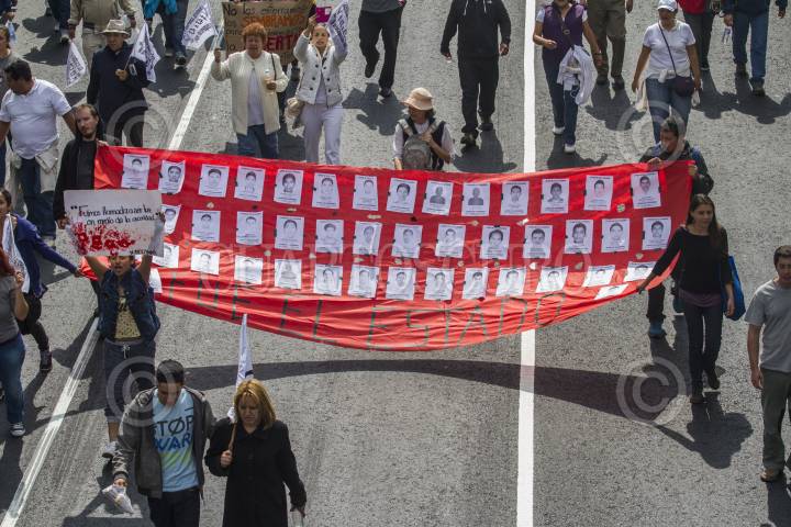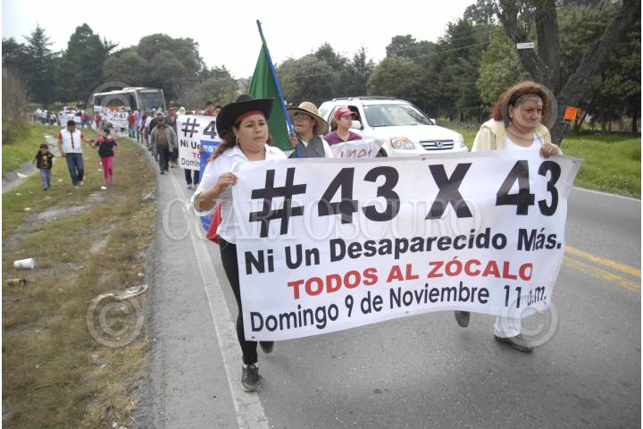 MÉXICO, D.F., 09NOVIEMBRE2014.- Cientos de personas de personas marcharon de la delegación Tlalpan al Zócalo de la ciudad de México, como parte de la caminata 43x43 que viene desde Iguala, en protesta por la desaparición de 43 Normalistas en el estado de Guerrero. FOTO: ISAAC ESQUIVEL /CUARTOSCURO.COM