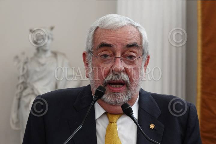 Enrique Graue, rector de la UNAM, durante su participación en la inauguración de la Edición 44 de la Feria Internacional del Libro en el Palacio de Minería