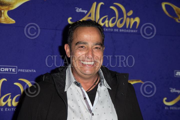 Omar Fierro durante la alfombra roja por las 450 representaciones del musical Aladdín, que se presenta en el Teatro Telcel.