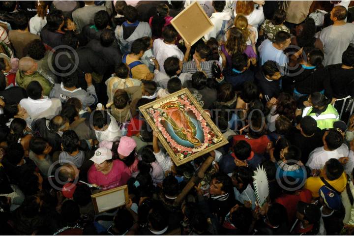 MÉXICO D.F., 12DICIEMBRE2009.- Cientos de peregrinos se amontonan en las entradas e incluso algunos se desmayan ya que intentan entrar a la Basilica de Guadalupe en este día que se celebra el 478 aniversario de su aparición en el cerro del Tepeyac. FOTO: RODOLFO ANGULO/CUARTOSCURO.COM