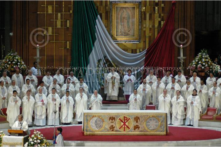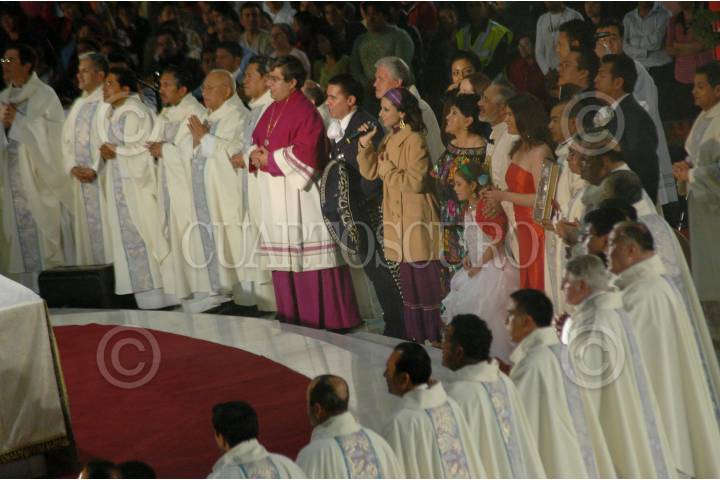 MÉXICO D.F., 12DICIEMBRE2009.- En punto de las 12 de la noche el rector de la Basilica,Diego Monroy y acompañado de miles de peregrinos entonaron las tradicionales mañanitas a la virgen de Guadalupe por motivo de la celebración del 478 aniversario de su aparición en el cerro del Tepeyac. FOTO: RODOLFO ANGULO/CUARTOSCURO.COM