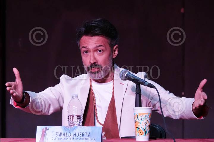 CIUDAD DE MÉXICO, 26SEPTIEMBRE2023.- El actor Swald Huerta, culturalmente responsable A.C, durante su participación en la conferencia de prensa de The 48 hour Film Project México realizada en la Caja Negra de la fábrica de Artes y Oficios del “Faro Cosmos”. FOTO: GRACIELA LÓPEZ /CUARTOSCURO.COM