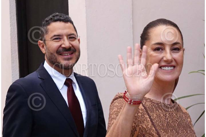 CIUDAD DE MÉXICO, 21 AGOSTO2024.- Claudia Sheinbaum, virtual presidenta electa, y Martí Batres Guadarrama, próximo director del ISSSTE, durante su llegada a la conferencia de prensa en la Casa de Transición, ubicada en la alcaldía Iztapalapa. FOTO: GRACIELA LÓPEZ /CUARTOSCURO.COM
