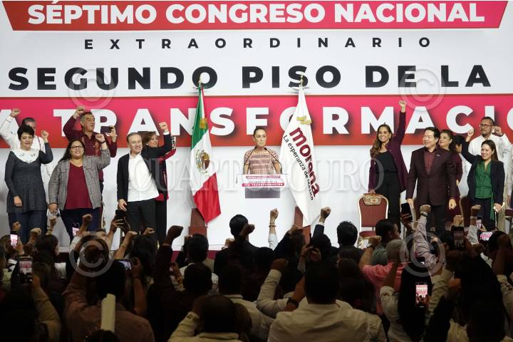 CIUDAD DE MÉXICO, 22SEPTIEMBRE2024.- Claudia Sheinbaum, virtual presidenta electa, encabezó el Séptimo Congreso Nacional Extraordinario de Morena realizado en el World Tarde Center. FOTO: GRACIELA LÓPEZ /CUARTOSCURO.COM