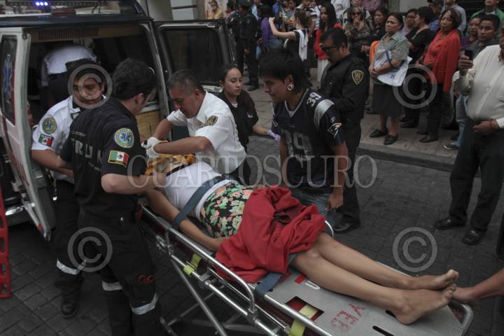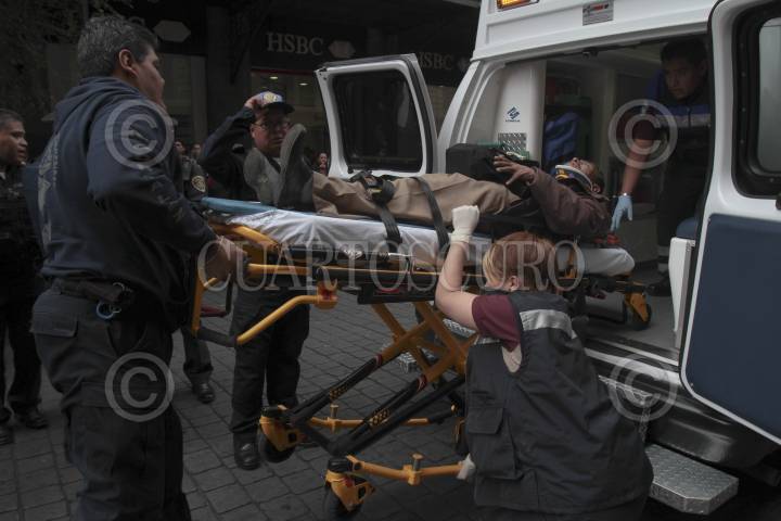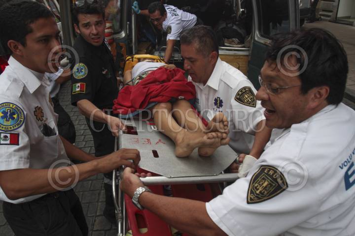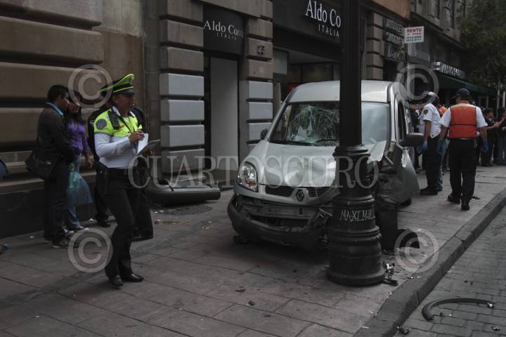 MÉXICO, D.F., 25AGOSTO2013.-El vehículo marca Renault con placas 139WFM impactó su curso en uno de los postes de alumbrado público, durante el percance fueron arrolladas 5 personas, entre ellas dos turistas de orígen Italiano, que fueron trasladados al hospital Londres. Según paramédicos y policias de tránsito, el chofer se quedó dormido ocasionando el impacto. FOTO: JUAN PABLO ZAMORA /CUARTOSCURO.COM