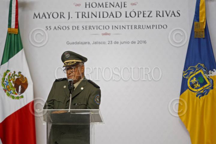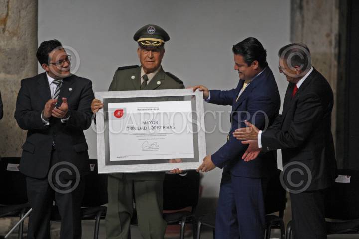 GUADALAJARA, JALISCO, 23JUNIO2016.-Esta mañana en Palacio de Gobierno fue homenajeado y reconocido por su trayectoria de 55 años de servicio ininterrumpido, el Mayor Trinidad López Rivas, Director de Protección Civil del estado, en evento que fue encabezado por Luis Felipe Puente, Coordinador Nacional de Protección Civil y el Gobernador de la entidad Jorge Aristóteles Sandoval Díaz. FOTO : FERNANDO CARRANZA GARCIA / CUARTOSCURO.COM