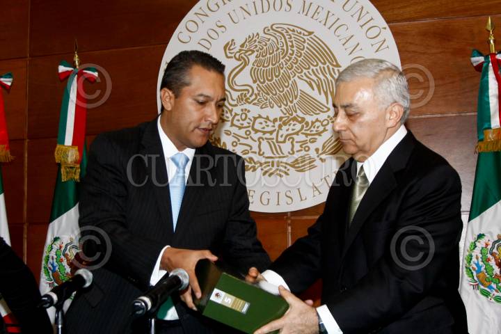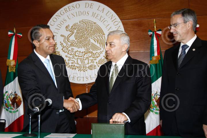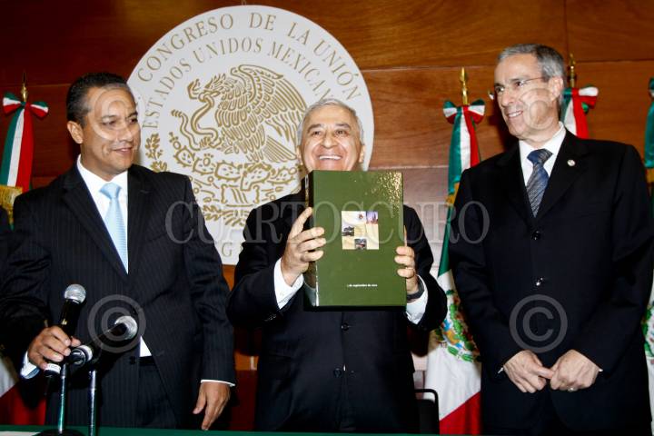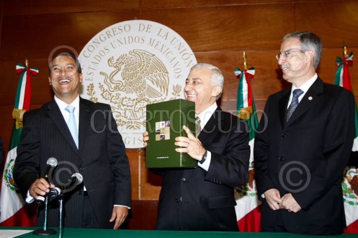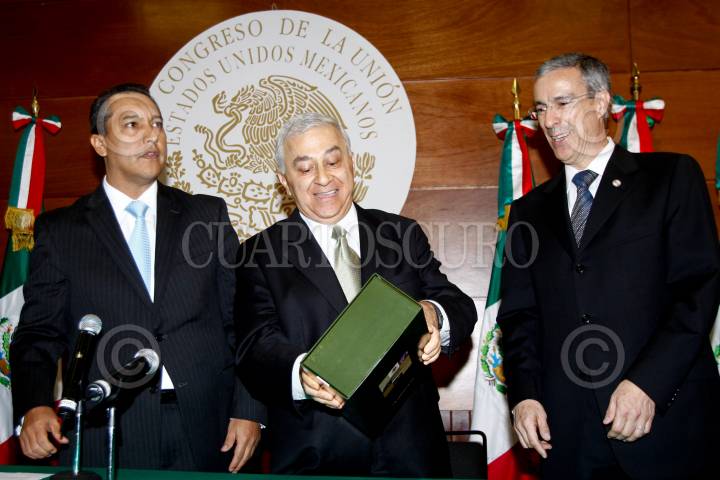 MÉXICO, D.F., 01SEPTIEMBRE2011.- José Francisco Blake Mora, secretario de Gobernación hizo entrega del 5to Informe de Gobierno del presidente Felipe Calderón al diputado Emilio Chuayffet Chemor, presidente de la mesa directiva de la Cámara de Diputados y a José Gonzalez Morfin, presidente de la mesa directiva de la Cámara de Senadores.. FOTO: RODOLFO ANGULO/CUARTOSCURO.COM