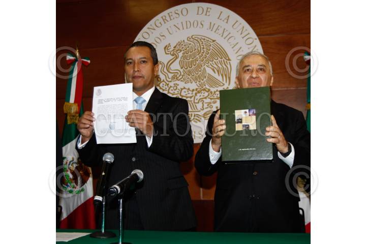 MÉXICO, D.F., 01SEPTIEMBRE2011.- José Francisco Blake Mora, secretario de Gobernación hizo entrega del 5to Informe de Gobierno del presidente Felipe Calderón al diputado Emilio Chuayffet Chemor, presidente de la mesa directiva de la Cámara de Diputados. FOTO: RODOLFO ANGULO/CUARTOSCURO.COM
