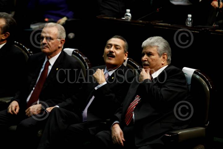 MÉXICO, D.F., 01SEPTIEMBRE2011.- Los senadores Francisco Labastida, Manlio Fabio Beltrones durante la sesión de Congreso General en donde José Francisco Blake Mora, secretario de Gobernación entrego el 5to Informe de Gobierno del presidente Felipe Calderón ante legisladores en la Cámara de Diputados. FOTO: RODOLFO ANGULO/CUARTOSCURO.COM