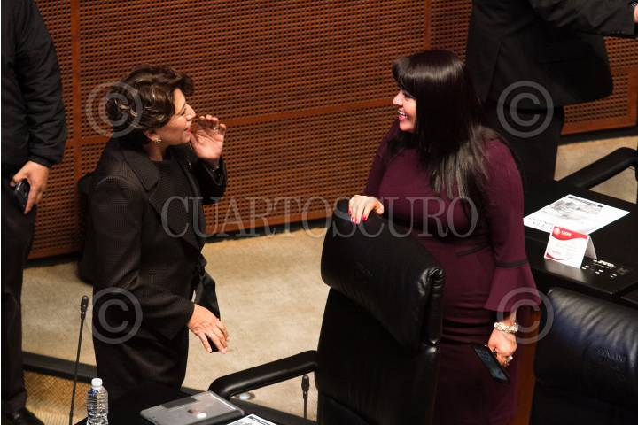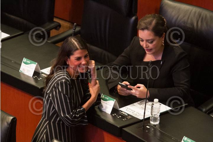CIUDAD DE MÉXICO, 29AGOSTO2018.- Las senadoras priistas Silvana Beltrones y Mónica Martínez García, en la sesión de instalación de la 64 Legislatura en la Cámara de Senadores. FOTO: MOISÉS PABLO /CUARTOSCURO.COM