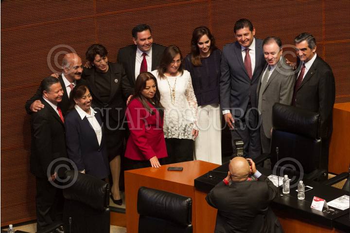 CIUDAD DE MÉXICO, 29AGOSTO2018.- La fracción del PAN en el Senado de la República se toma la foto después de rendir protesta al cargo para la 64 Legislatura. FOTO: MOISÉS PABLO /CUARTOSCURO.COM