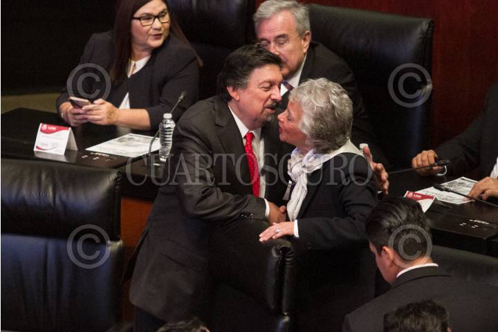 CIUDAD DE MÉXICO, 29AGOSTO2018.- Napoléon Gómez Urrutia, y Olga Sánchez Cordero, durante la sesión de instalación de la 64 Legislatura en la Cámara de Senadores. FOTO: MOISÉS PABLO /CUARTOSCURO.COM