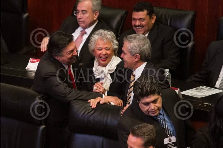 CIUDAD DE MÉXICO, 29AGOSTO2018.- Napoléon Gómez Urrutia, Olga Sánchez Cordero, y Miguel Ángel Mancera, durante la sesión de instalación de la 64 Legislatura en la Cámara de Senadores. FOTO: MOISÉS PABLO /CUARTOSCURO.COM