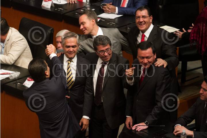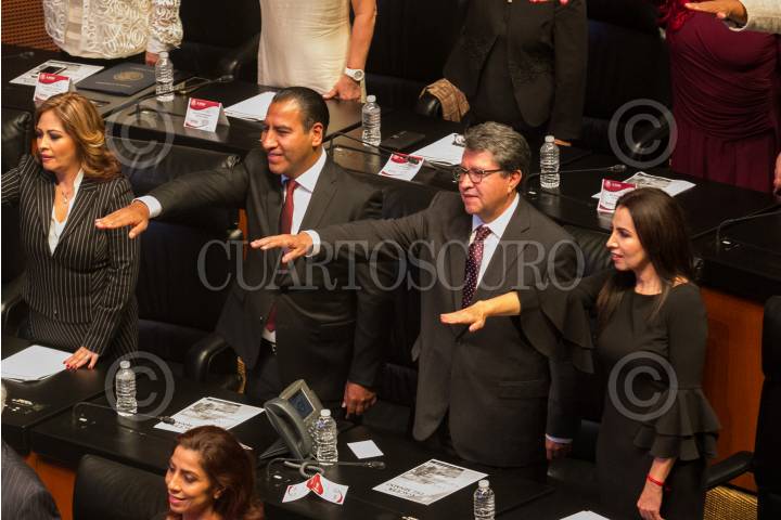CIUDAD DE MÉXICO, 29AGOSTO2018.- Ricardo Monreal toma protesta como integrante de la 64 Legislatura en la Cámara de Senadores. El zacatecano fue nombrado como coordinador de la bancada del partido Morena. FOTO: MOISÉS PABLO /CUARTOSCURO.COM