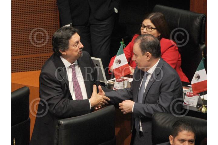CIUDAD DE MÉXICO, 06SEPTIEMBRE2018.- Los senadores de Morena; Napoleón Gómez Urrutia y Alfonso Durazo, en la sesión ordinaria de la Cámara Alta. FOTO: MISAEL VALTIERRA /CUARTOSCURO.COM