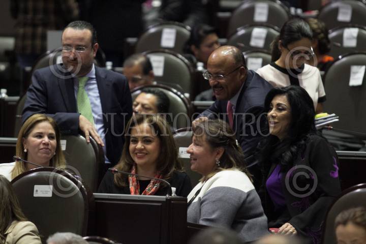 CIUDAD DE MÉXICO, 18SEPTIEMBRE2018.- René Juárez Cisneros, coordinador del PRI, se toma una foto con legisladoras durante la séptima sesión de la LXIV legislatura en San Lázaro. FOTO: GALO CAÑAS /CUARTOSCURO.COM