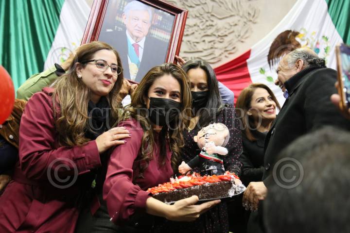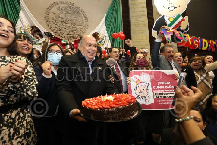Diputados de la bancada de Morena llevaron pastel en conmemoración del festejos del cumpleaños 68 de Andrés Manuel López Obrador, presidente de México, durante la Sesión Ordinaria en el pleno de la Cámara de Diputados
