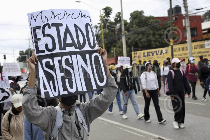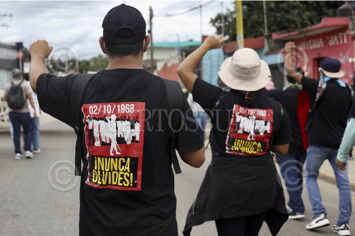 OAXACA, OAXACA, 02OCTUBRE2024.- Al conmemorarse 56 años de la Matanza de Tlatelolco, estudiantes normalistas de Oaxaca marcharon en la capital del estado para recordar los hechos ocurridos el 2 de octubre de 1968 y exigir alto a la represión estudiantil. Los estudiantes marcharon de forma pacífica mientras gritaron consignas y mostraron pancartas. FOTO: CAROLINA JIMÉNEZ/CUARTOSCURO.COM