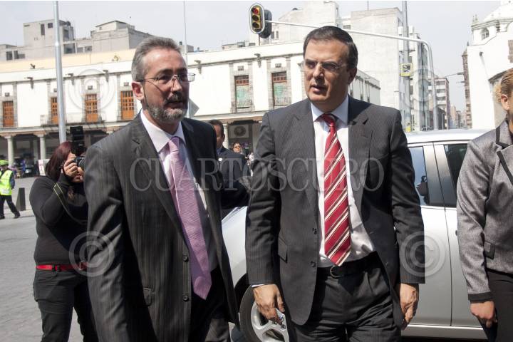 MÉXICO, D.F., 29MARZO2012.- Macelo Ebrard Casaubon Jefe de Gobierno del D.F. acompañado de Oscar Guerra Ford Comisionado Presidente del Instituto de Acceso a la Información Pública y Protección de Datos Personales del Distrito Federal (InfoDF) a su llegada a la Presentación del 6º. Informe de Actividades y Resultados del InfoDF. FOTO: GUILLERMO PEREA /CUARTOSCURO.COM