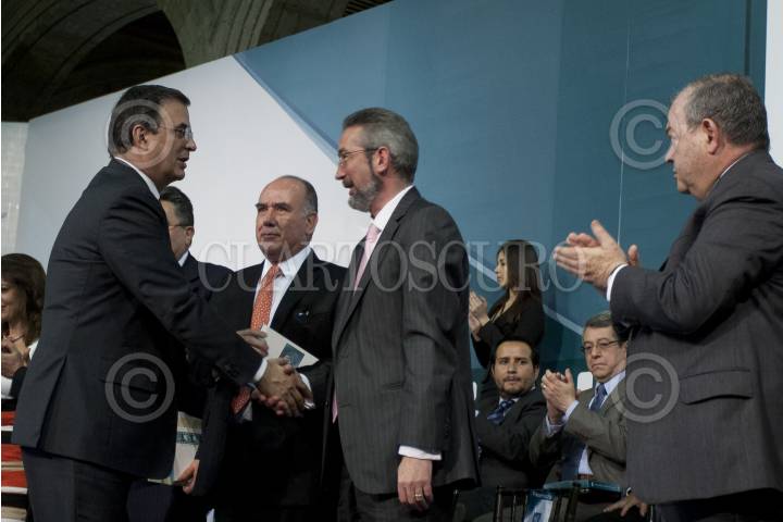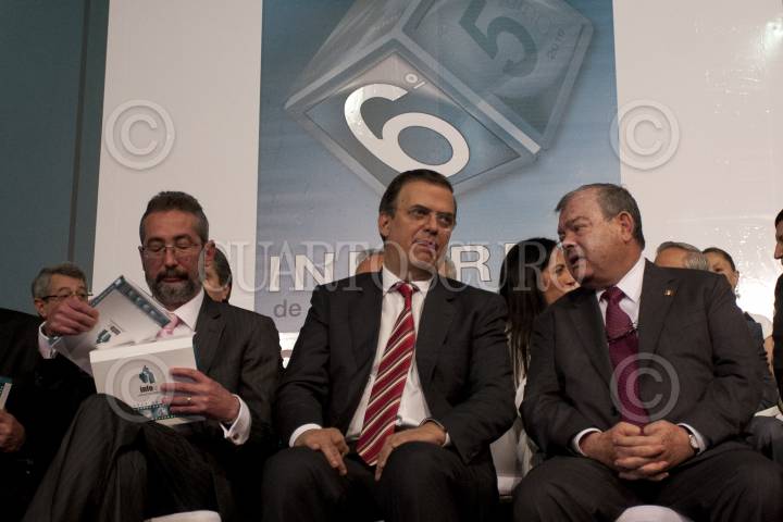 MÉXICO, D.F., 29MARZO2012.- Macelo Ebrard Casaubon Jefe de Gobierno del D.F. acompañado de Edgar Elías Azar Magistrado Presidente del Tribunal de Justicia del Distrito Federal entre otros acudió a la Presentación del 6º. Informe de Actividades y Resultados del InfoDF por parte de Oscar Guerra Ford Comisionado Presidente del Instituto de Acceso a la Información Pública y Protección de Datos Personales del Distrito Federal (InfoDF). FOTO: GUILLERMO PEREA /CUARTOSCURO.COM