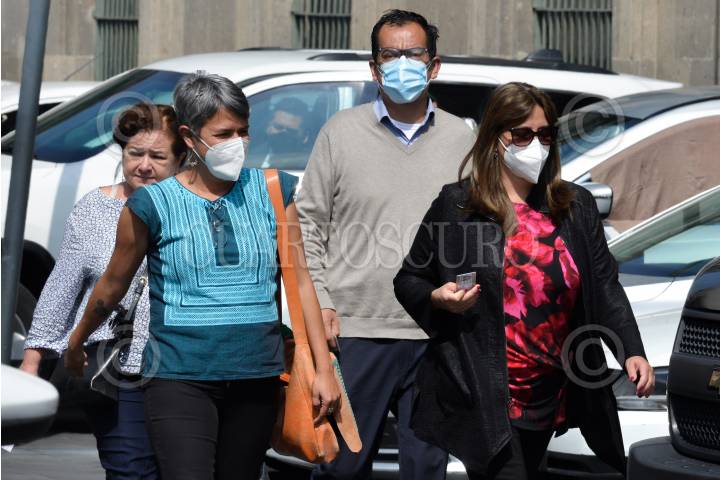 Karla Quintana Osuna, Comisionada Nacional de Búsqueda de Personas Desaparecidas en México, y Ángela Buitrago, integrante del Grupo Interdisciplinario de Expertos Independientes (GIEI), durante su llegada a la reunión de familiares de los 43 normalistas desaparecidos con Andrés Manuel López Obrador, presidente de México, en Palacio Nacional.
