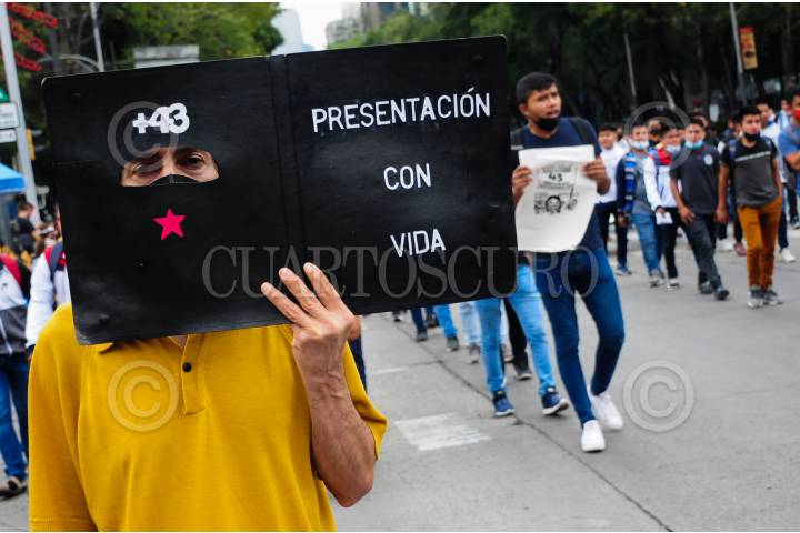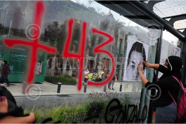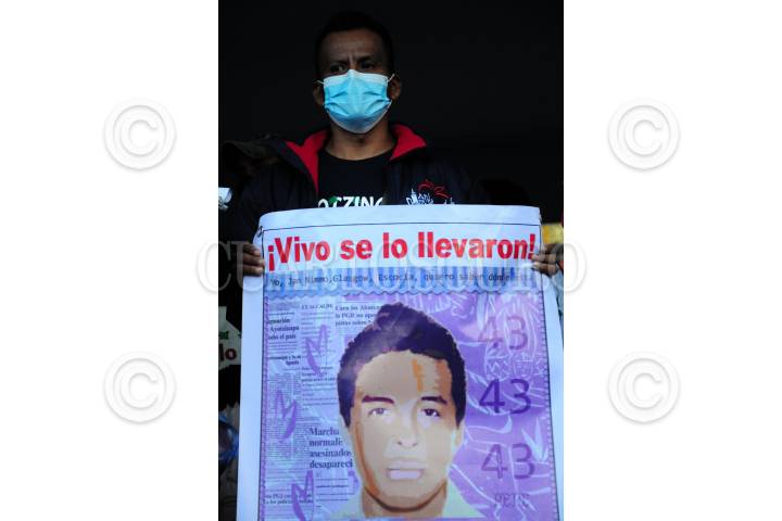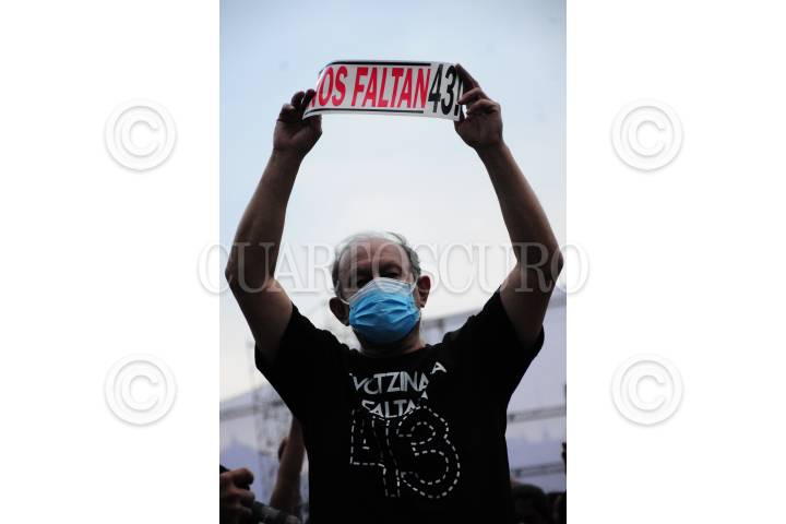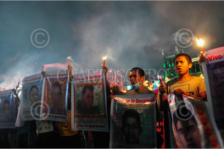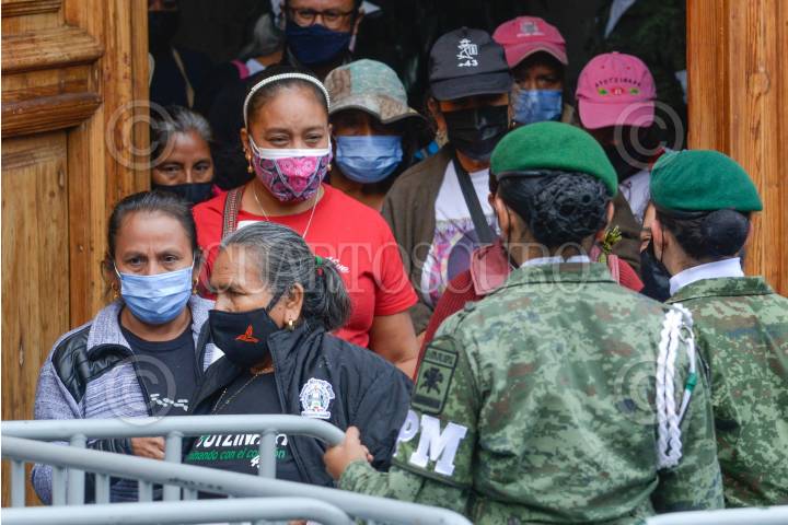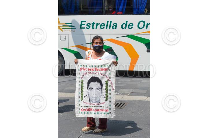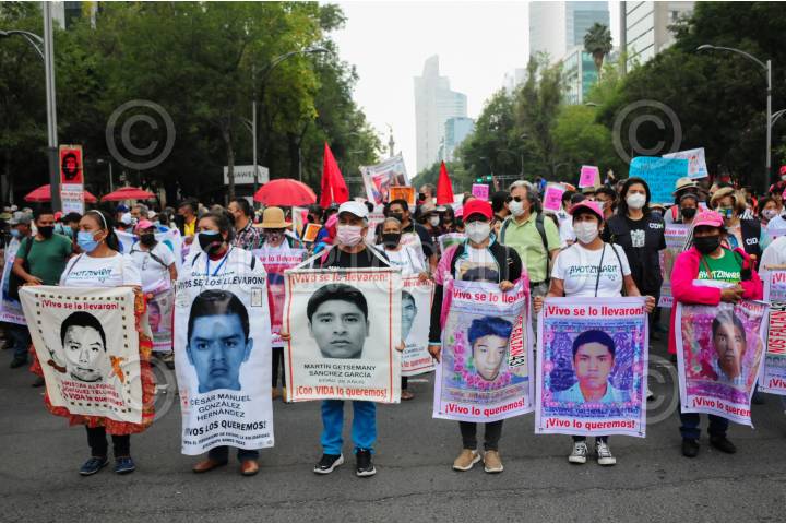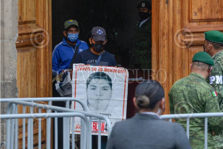 Familiares de los 43 normalistas desaparecidos de la Escuela Normal de Ayotzinapa durante su salida de Palacio Nacional luego de sostener una reunión con Andrés Manuel López Obrador, presidente de México.